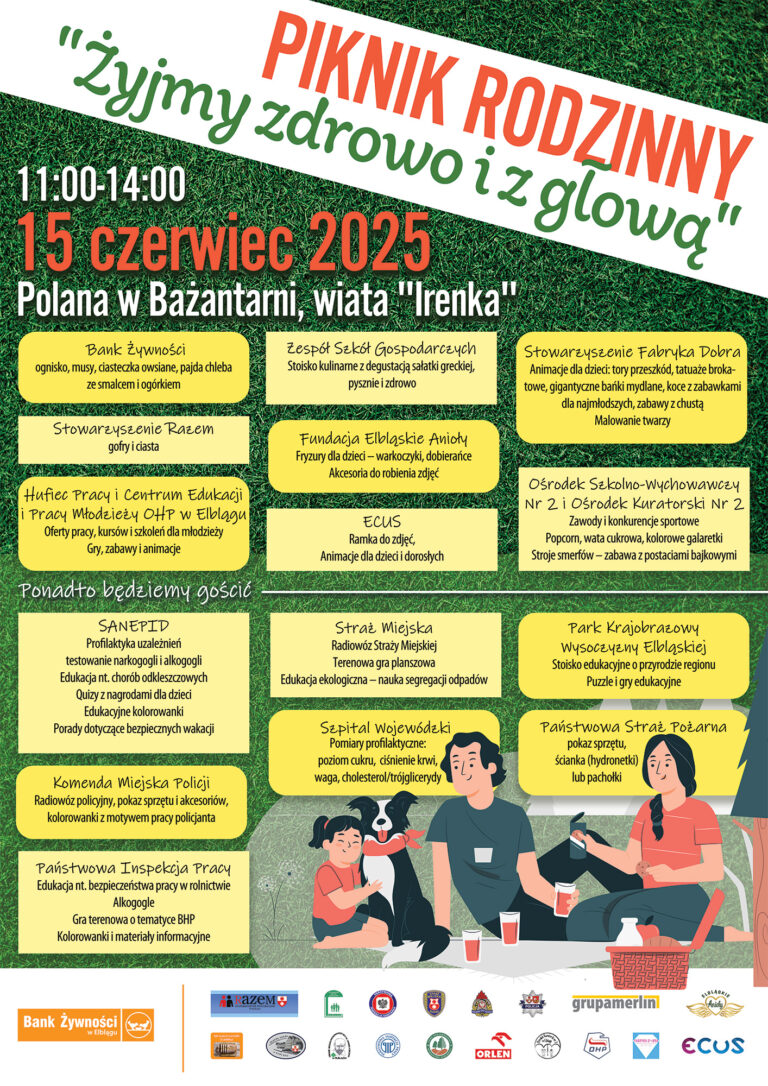 Bank Żywności w Elblągu zaprasza na kolejny piknik rodzinny, w tym roku pod hasłem „Żyjmy zdrowo i z głową”. Spotkamy się w Parku Bażantarnia na